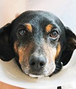 Toby bígl, pes, narozen přibližně v 10/2009. Do útulku byl přivezen MP, která ho odchytila u obce Zeměchy. Nemá čip, tetování ani obojek se známkou. Toby je milý, klidný a přátelský pes. Ostatních psů v kotcích si nevšímá. Našel domov v Praze 5. |