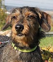 Lady drsnosrstý jezevčík, fena, narozena přibližně v 11/2014, 28 cm, 8,2 kg. Do útulku byla přivezena pracovníky MP, kteří jí odchytili u vlakového nádraží v Kralupech nad Vltavou. Nemá žádné označení. Lady je milá, kontaktní a velmi mazlivá psí slečna. Na vodítku chodí dobře, ostatních psů v kotcích si nevšímá a občas se jí povede i povel sedni. V útulku se zatím rozkoukává, brzy dodáme více informací. Našla domov ve Klech. |