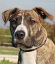 Felicita amstaf nebo jeho kříženka, fena, narozena přibližně v 11/2013, 48 cm, 23,8 kg. Felicita byla do útulku přivezena nálezkyní, která ji našla na silnici mezi obcí Kladno Švermov a Brandýsek. Na této silnici mladá fenka pobíhala zcela bezprizorně a poté, co nálezkyně autem zastavila, Felicita se k ní ihned přidala a s radostí, že vidí svého záchrance, jí skočila do auta. Felicita byla zřejmě na této silnici vyhozena na pospas svého osudu. Nemá čip ani jiné označení. I přes to, co si Felicita musela prožít, neztrácí naději, lásku a důvěru k lidem. Ze začátku je sice rezervovanější, ale po pár vlídných a klidných slovech se z ní stává veselá a neohrožená psí kamarádka. Ráda se mazlí, umí aportovat a míček i přináší zpět, umí povel sedni a občas i povel lehni. V kotci se snaží být čistotná, na vodítku chodí dobře a ostatních psů v kotcích si nevšímá. Sama doma být nechce, projevila se nečistotně a okusovala dveře. Našla nový domov v Praze 8. |