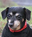 Betynka jezevčík, fena, narozena 16.4.2010, 29 cm, 7,9 kg. Betynka byla zvyklá žít v domě spolu se svou paničkou. Sama si dle potřeby vybíhala na zahrádku. Na procházky chodila bez vodítka, paničky se vždy držela jako klíště. Je to velký mazlíček, ale nechce být doma sama. Se psy vychází dobře, jen si hlídá svou misku, ráda běhá za míčkem, ráda jezdí autem, ráda si hraje a umí povel sedni. Na vodítku mírně tahá a kočky moc nemusí. Je dobrý hlídač, nic jí neunikne. Našla domov v Orlové. |