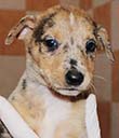 Winky kříženec, pes, narozen přibližně v 4/2014, 36 cm, 7,2 kg. Do útulku byl přivezen MP. Winky je z počátku rezervovaný, ale po pohlazení je z něho kamarád. Je milý, kontaktní a v kotci je čistotný. Našel nový domov v Praze 6. |