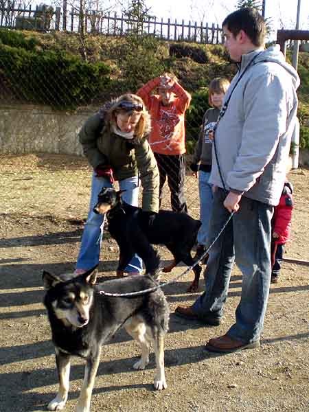 Na venčení neberte svého psa. I když vám věříme, že je vychovaný, za ty naše ručit nemůžeme, hodně z nich druhého psa nesnese, a pokud by se vám servali, sami si s tím neporadíte. Pokud chcete ozkoušet, jestli se váš pes snese s některým z našich psů, kterého chcete adoptovat, vždy je nutno se na tom předem domluvit s vedoucí útulku, která trvá na osobní přítomnosti u těchto seznámení.